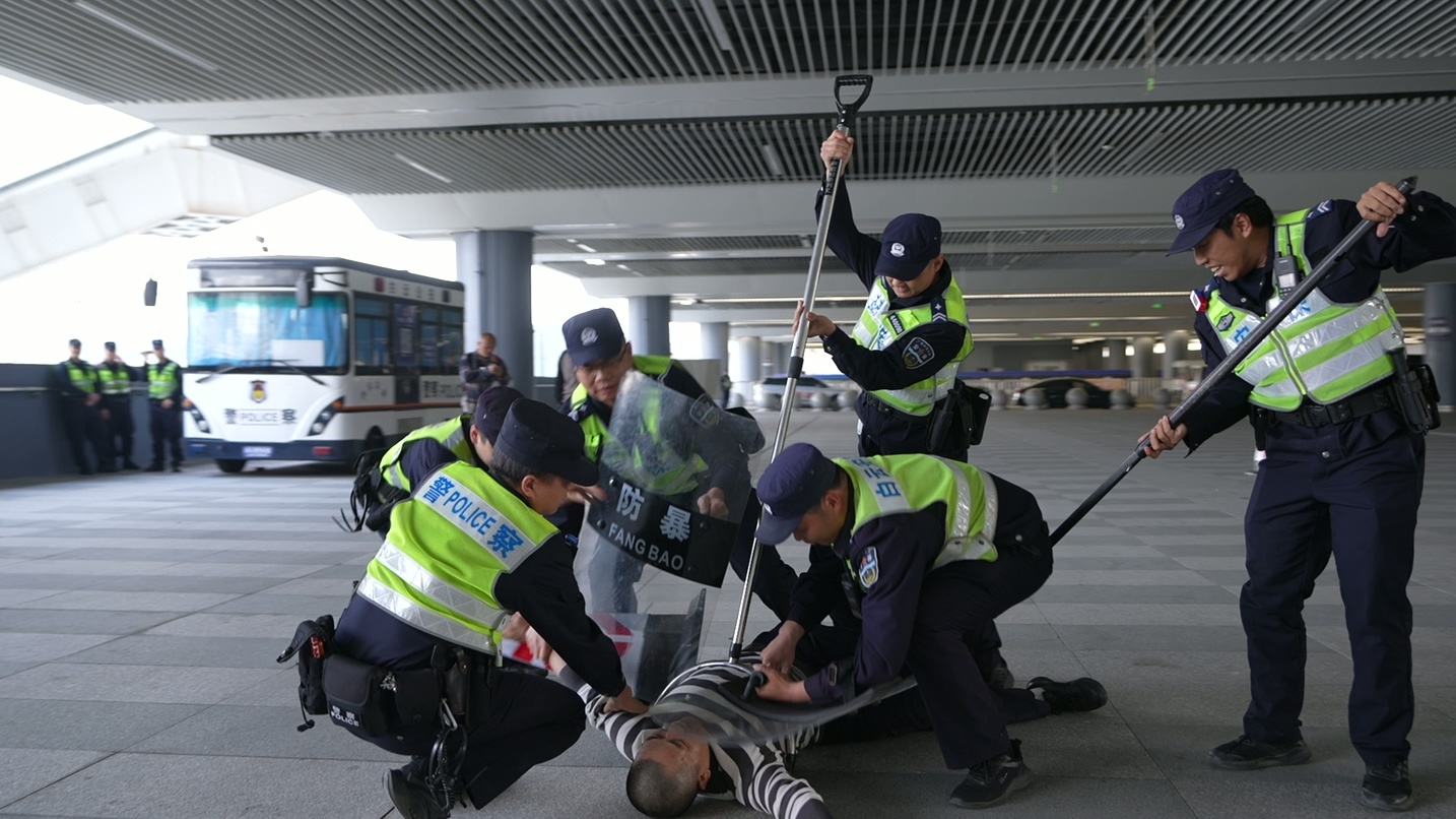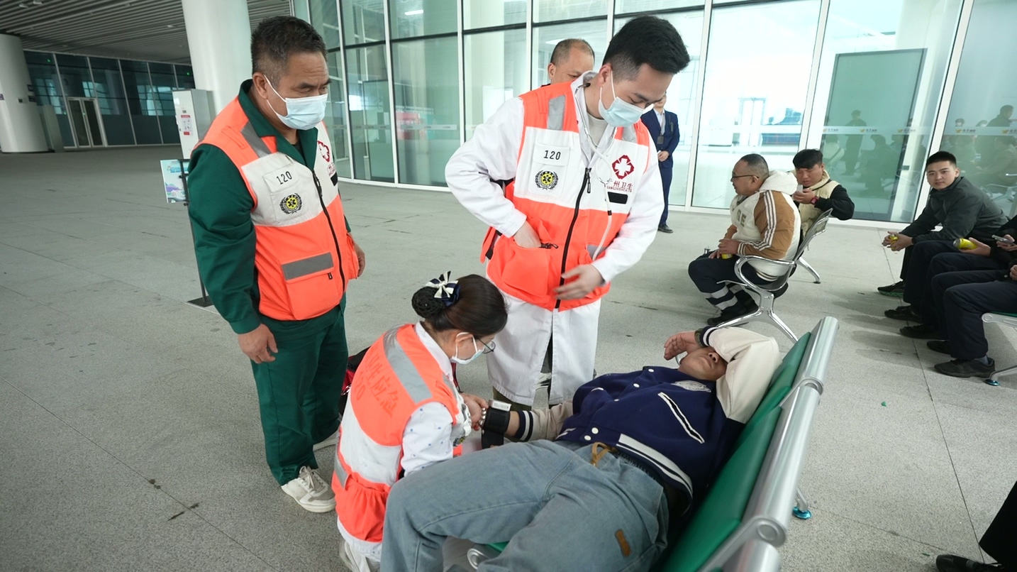 演练过程中,突发医疗事件、治安事件、火灾等场景接连上演。临时等候区一名旅客因疲劳引发低血糖症状,医疗救护组3分钟内抵达现场,快速完成生命体征检测、应急处置及后续随访,彰显了医疗保障的专业性与及时性;南广场一名非法拉客人员纠缠旅客并袭扰工作人员,安保人员迅速隔离冲突区域,民警依法实施强制控制,及时引导现场舆情,维护了站区治安秩序;南呼吸广场垃圾桶因未熄灭烟头引燃,安保人员第一时间处置初期火情,消防救援队伍快速到场扑灭明火,全面排查隐患并加强安全提示,筑牢消防安全防线。针对夜间大客流集中到达场景,交通转运组启动夜间疏散模式,调度应急公交、加班大巴开通直达专线,志愿者分区引导旅客换乘,1小时内完成1万名旅客疏运,确保了夜间旅客出行安全顺畅。